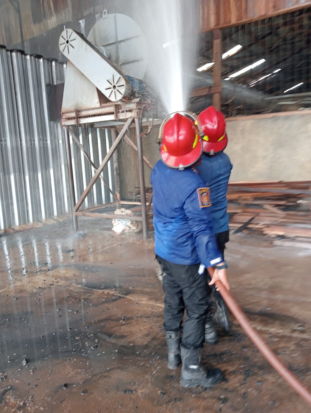 Menurut hasil pemeriksaan sementara, kebakaran diduga kuat dipicu oleh korsleting pada blower, yang kemudian menjalar ke area penampungan abu di dalam gudang. Api dengan cepat membesar dan melalap bangunan.