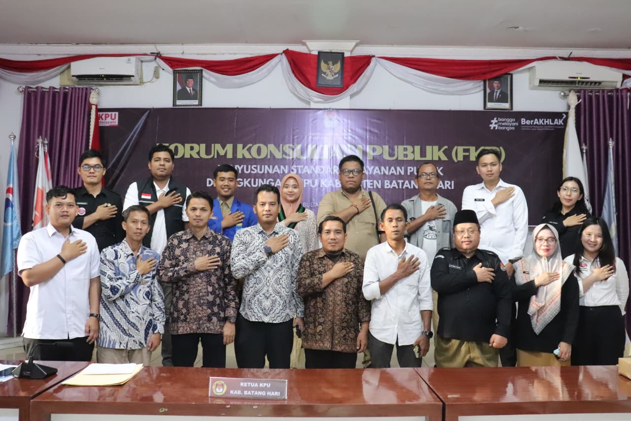 JambiDalamBerita.id, Batang Hari – Komisi Pemilihan Umum (KPU) Kabupaten Batang Hari menggelar Forum Konsultasi Publik (FKP) dalam rangka penyusunan Standar Pelayanan Publik, Rabu (13/11/2025).